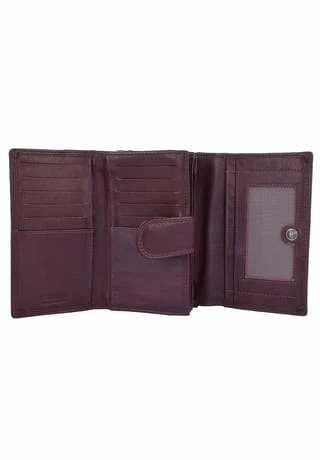 Handliche, elegante Druckknopf-Geldbörse für modebewusste Damen aus feinem Rindsleder. Das Portemonnaie bietet sehr viel Stauraum für Ihre Geldscheine, Kreditkarten, Coupons oder Einkaufszettel und ist zudem dank der hervorragenden Verarbeitung und des schicken Designs einen echten Hingucker. Durch ihre praktische Größe ist die Geldbörse der idealer Begleiter im Alltag.