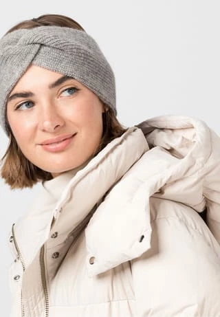 Bietet der Kälte die Stirn: das edle HALLHUBER Haarband aus superweichem Kaschmir mit Merinowolle. Der doppellagige Feinstrick im Patentmuster ist vorn in Knotenoptik gearbeitet. Das Stirnband lässt sich zum eleganten Mantel genauso wie zur sportiven Steppjacke tragen und kann mit dem passenden Schal kombiniert werden. think forward. HALLHUBER verwendet für dieses Produkt Kaschmirwolle aus nachhaltiger, verantwortungsvoller Herkunft. Hierbei werden strenge Tierschutz- und Umweltkriterien sowie soziale Bedingungen für Bauern und Beschäftigte eingehalten.think forward. Mulesing ist eine schmerzhafte Methode, um Schafe vor Fliegenbefall zu schützen. HALLHUBER befindet diese Verfahrensweise als nicht ökologisch vertretbar, weshalb bei der Auswahl von Merinowolle darauf geachtet wird, sie von Zulieferern zu beziehen, die kein Mulesing betreiben.
