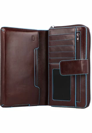 Design trifft Funktionalität. Geldbörse von Piquadro aus hochwertigem Leder mit ausgefallenen Details. Dank der zahlreichen Fächer für Geld und Karten ist eine optimale Übersicht garantiert. Der edle Begleiter im Alltag.