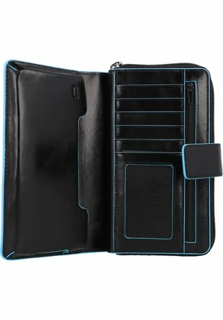 Design trifft Funktionalität. Geldbörse von Piquadro aus hochwertigem Leder mit ausgefallenen Details. Dank der zahlreichen Fächer für Geld und Karten ist eine optimale Übersicht garantiert. Der edle Begleiter im Alltag.
